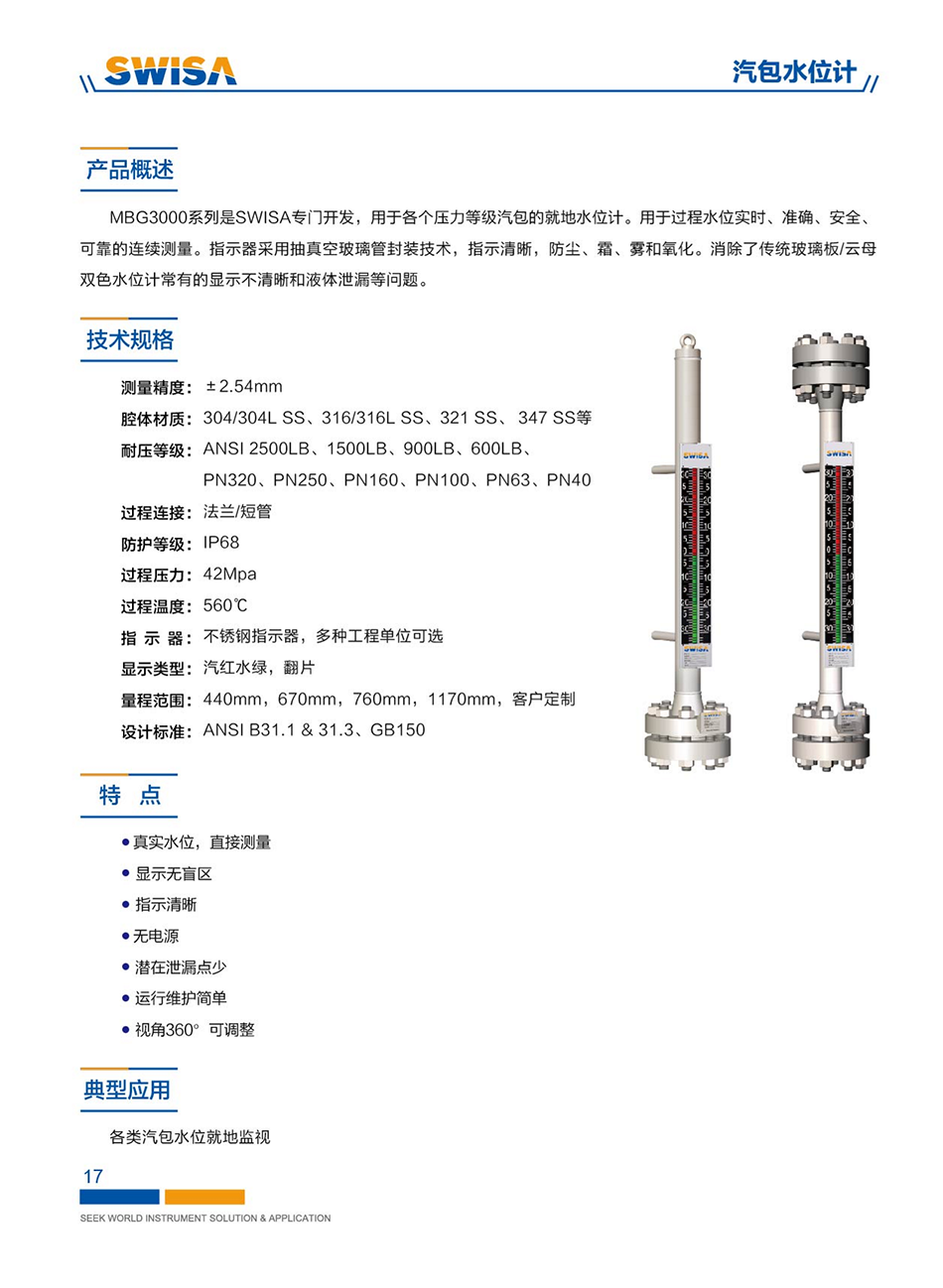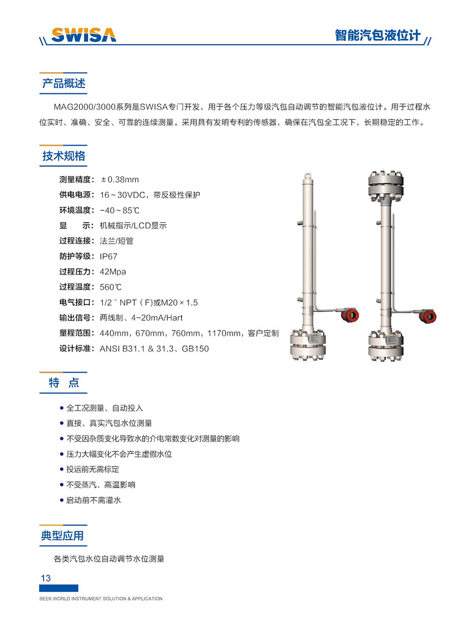 SWISA提供完整的汽包水位安全精準(zhǔn)測(cè)量系統(tǒng),系統(tǒng)分為三個(gè)層次,從不同的維度監(jiān)測(cè)、控制汽包水位。系統(tǒng)采用的各類水位計(jì),均解決了外部測(cè)量筒取樣水溫度與汽包內(nèi)飽和水溫度偏差而造成的水位測(cè)量數(shù)據(jù)偏離真實(shí)值的問題。
