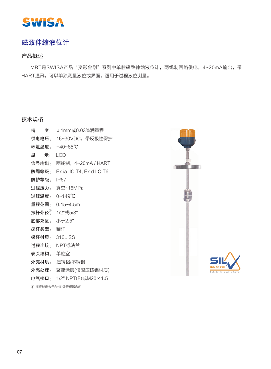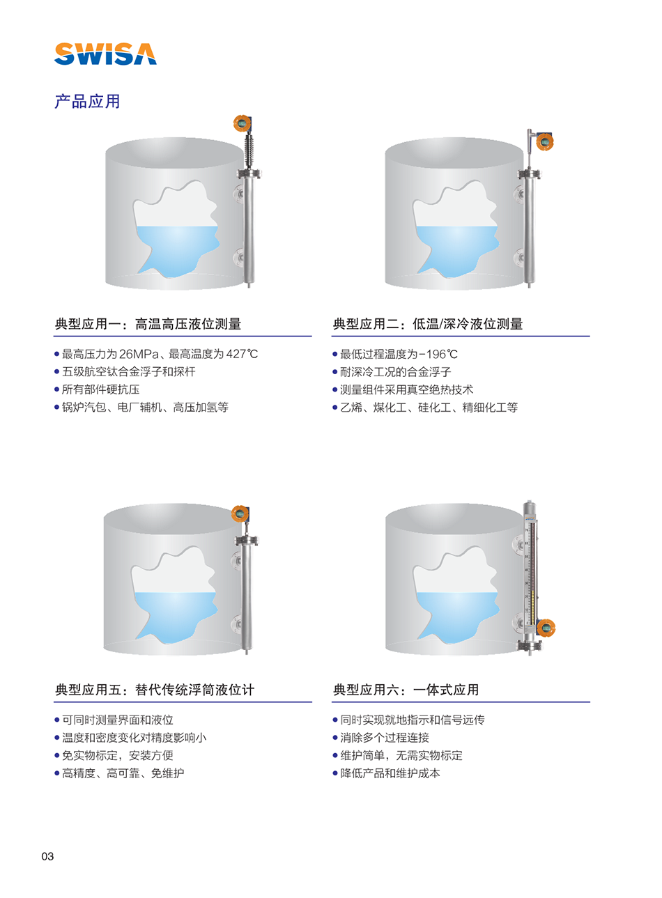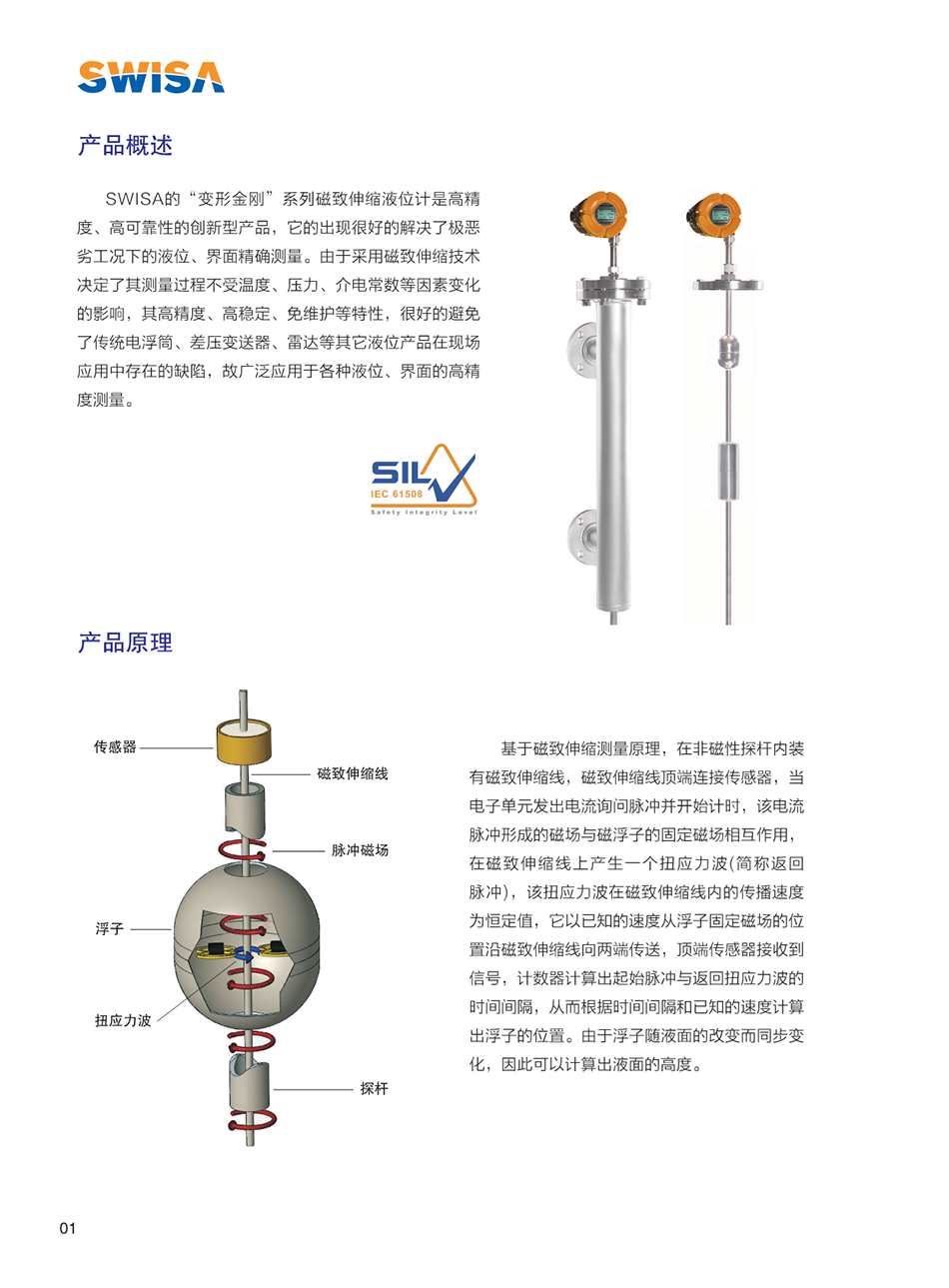 SWISA的“變形金剛”系列磁致伸縮液位計(jì)是高精度、高可靠性的創(chuàng)新型產(chǎn)品,它的出現(xiàn)很好的解決了極惡劣工況下的液位、界面測(cè)量。由于采用磁致伸縮技術(shù)決定了其測(cè)量過(guò)程不受溫度、壓力、介電常數(shù)等因素變化的影響,其高精度、高穩(wěn)定、免維護(hù)等特性,很好的避免了傳統(tǒng)電浮筒、差壓變送器、雷達(dá)等其它液位產(chǎn)品在現(xiàn)場(chǎng)應(yīng)用中存在的缺陷,故廣泛應(yīng)用于各種液位、界面的高精度測(cè)量。